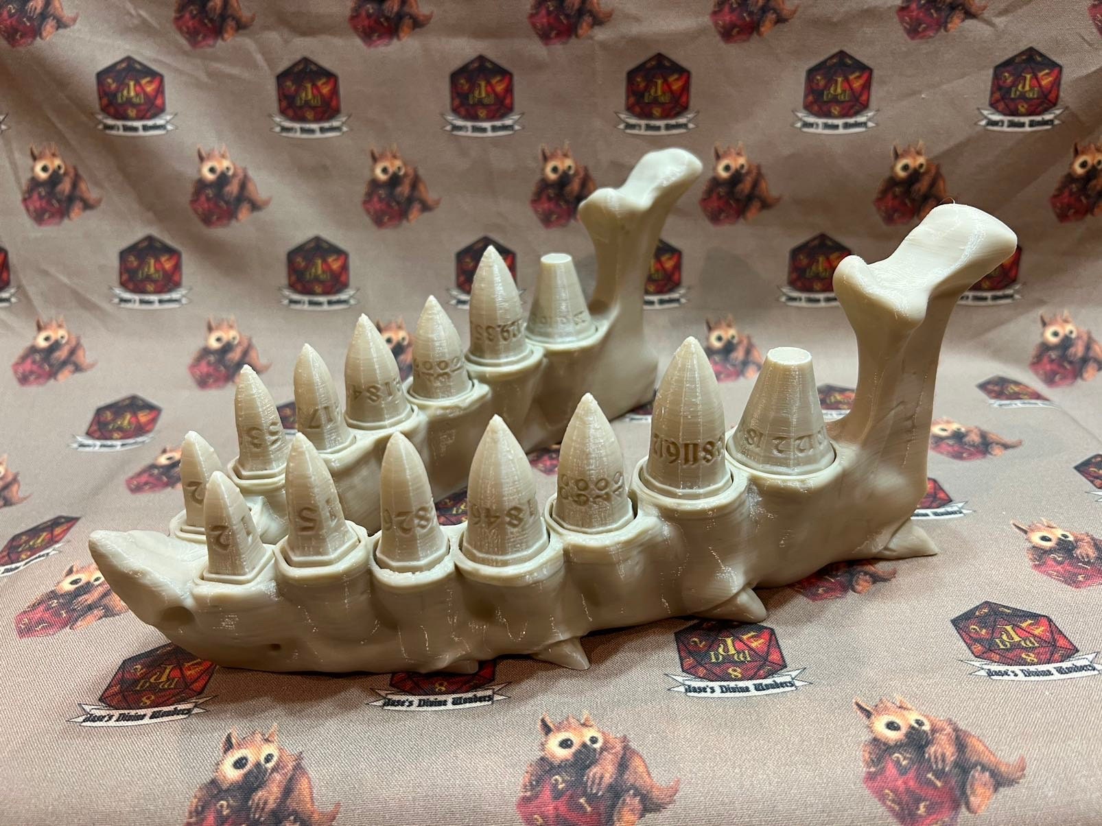 Dragon Tooth Dice are dice designed to look like the lost teeth of a dragon. Does your adventurer need some bones for their fireball?